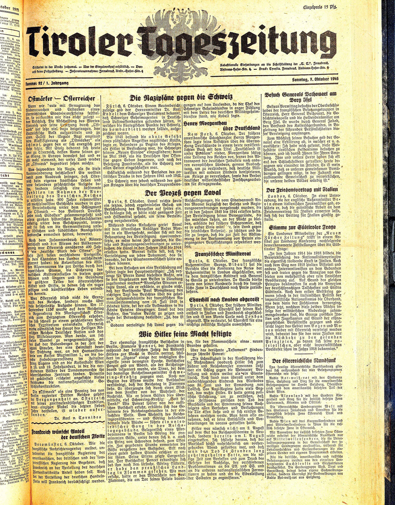 Erscheint in der Woche sechsmal. — Nur im Einzelverkauf erhältlich. — Dorerst keine Dostzustellung. — Inseratenannahme: Innsbruck, Andr.-Hofer-Str. 4