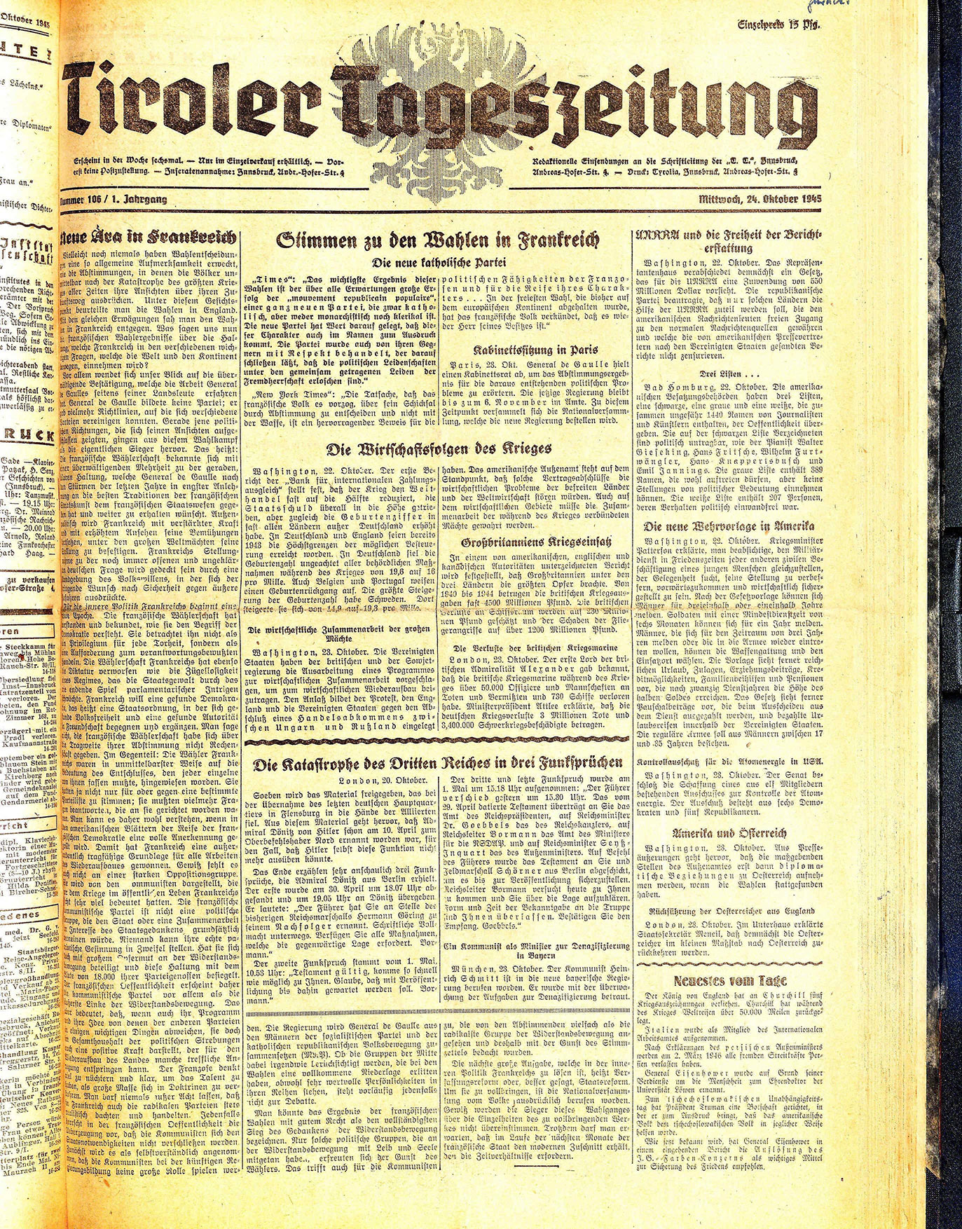 Erscheint in der Woche sechsmal. — Uur im Einzelverkauf erhältlich. — Vorerst keine Postzustellung. — Inseratenannahme: Innsbruck, Andr.-Hofer-Str. 4