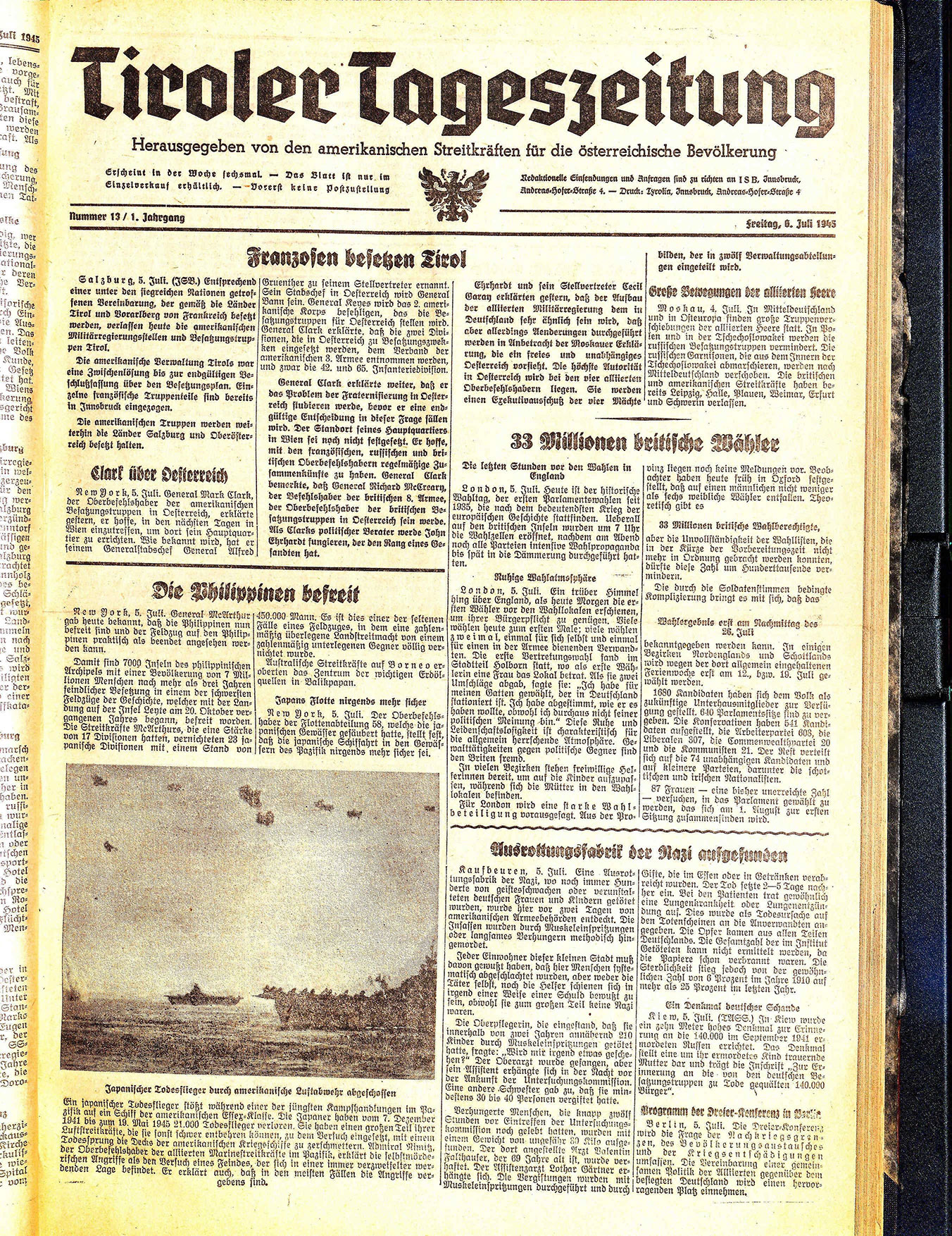 Die amerikanische Verwaltung Tirols war eine Zwischenlösung bis zur endgültigen Beschlußfassung über den Besetzungsplan. Einzelne französische Truppenteile sind bereits in Innsbruck eingezogen.