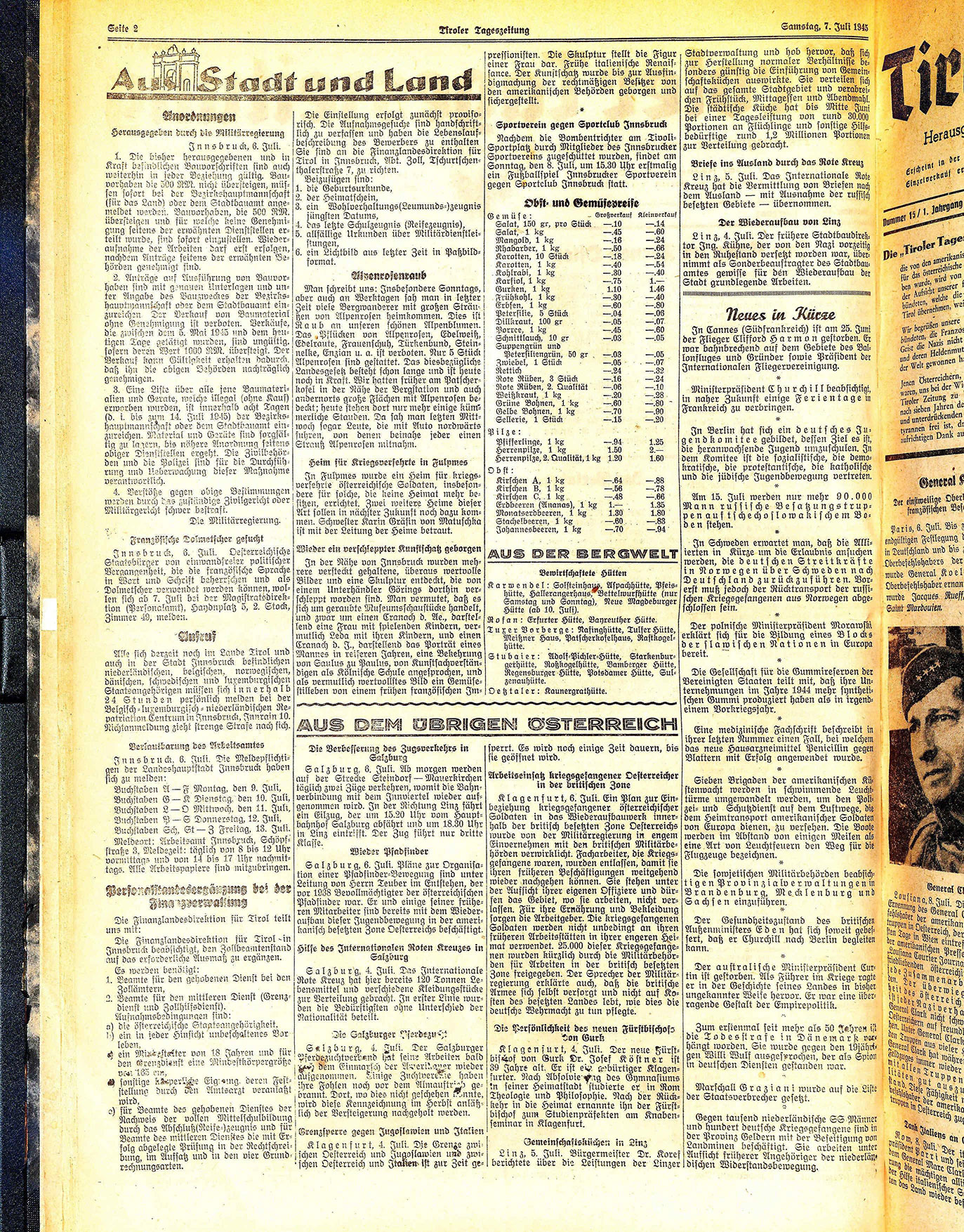 Herausgegeben durch die Militärregierung Innsbruck, 6. Juli.
