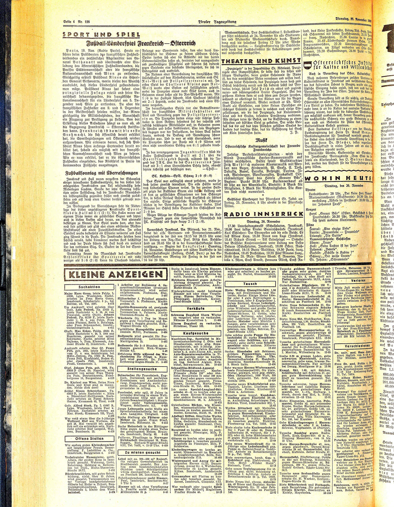 Auskunft erbeten über Gf. Franz Pöll, geb. 1925, letzte Nachricht vom 17. 4. aus Schönbrunn bei Mähr.-Ostrau, Fp. 17251 B. Fam. Franz Pöll, Kirchbichl, Boden 43, oder Josefa Pöll, InnsbruckPradl, Cranachstr. 1. 4-111