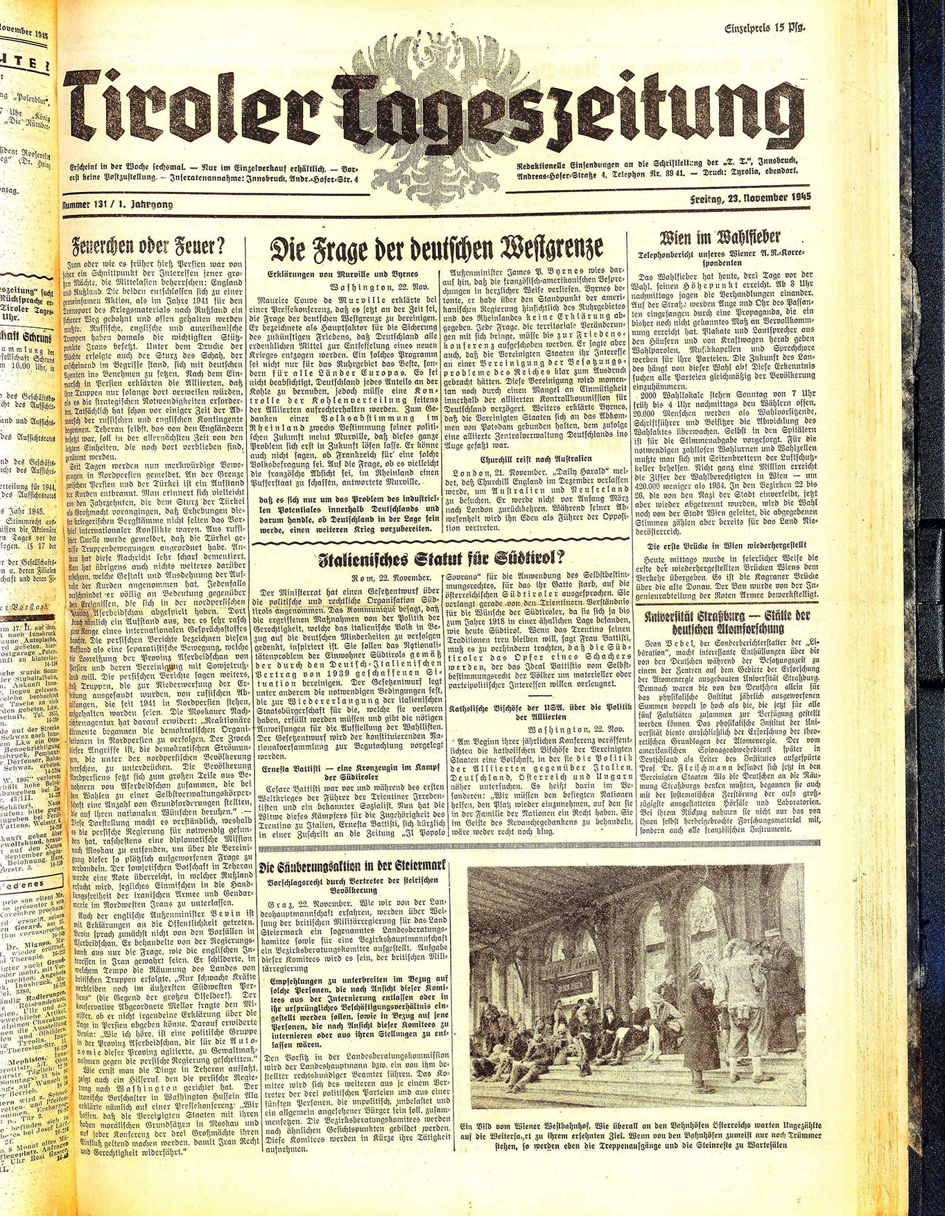 Erscheint in der Woche sechsmal. — Nur im Einzelverkauf erhältlich. — Vorerst keine Postzustellung. — Inseratenannahme: Innsbruck, Andr.=Hofer=Str. 4