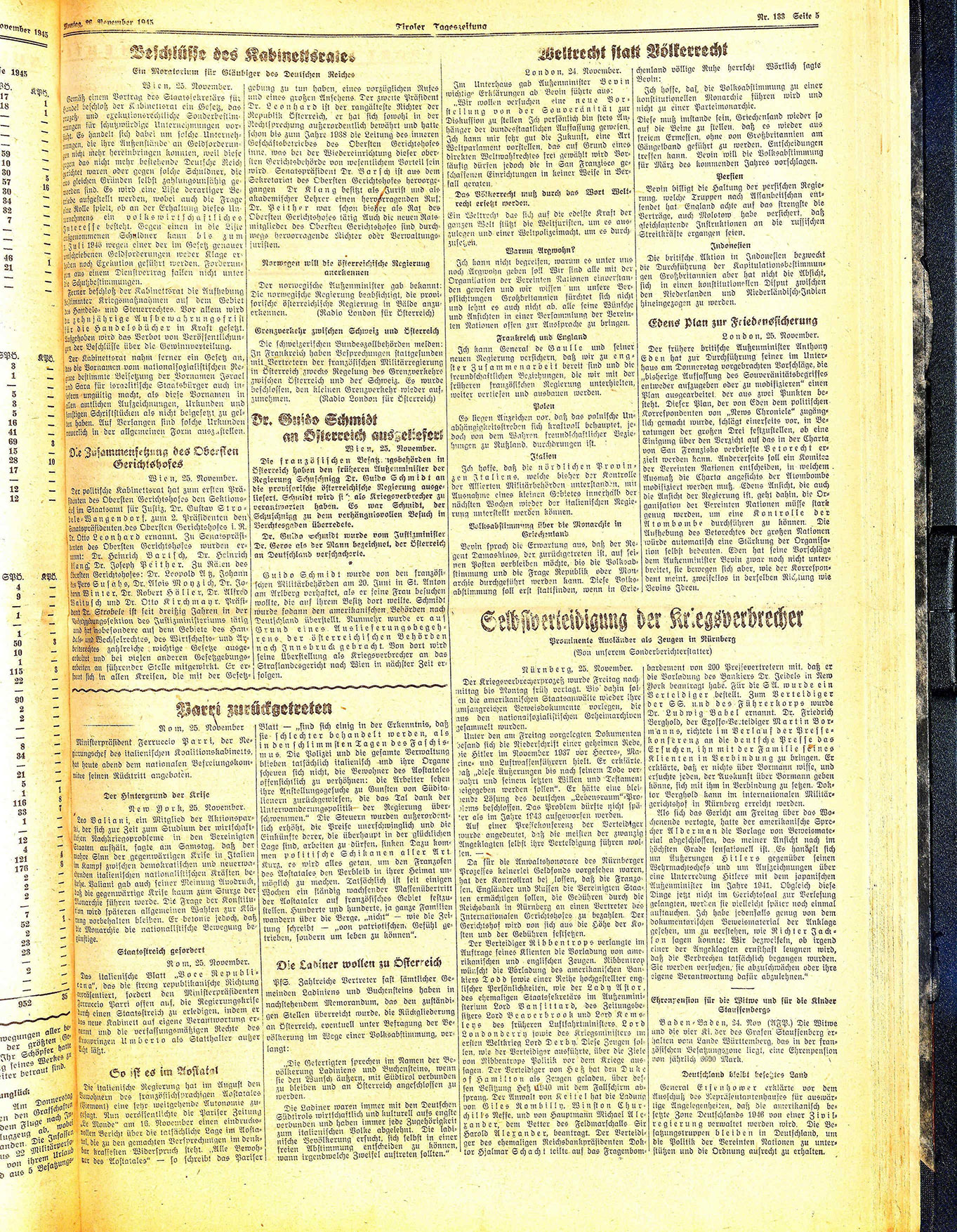 Die französischen Besatzngsbehörden in Österreich haben den früheren Außenminister der Regierung Schuschnigg Dr. Guido Schmidt an die provisorische österreichische Regierung ausgeliefert. Schmidt wird si“ als Kriegsverbrecher zu verantwarten haben. Es war Schmidt, der Schuschnigg zu dem verhängnisvollen Besuch in Berchtesgaden überredete.