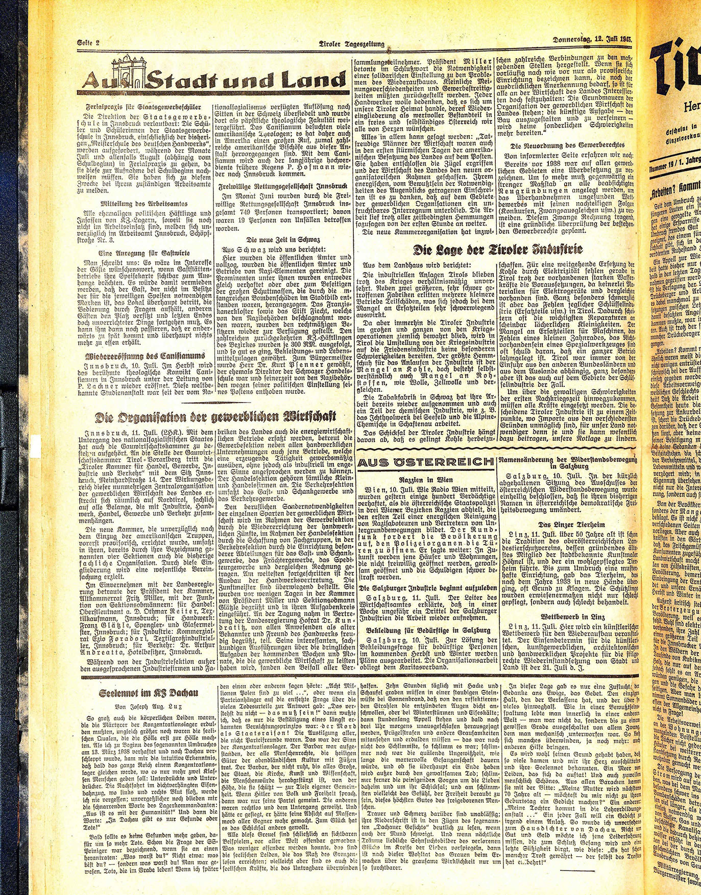 Die Tabakfabrik in Schwaz hat ihre Arbeit bereits wieder aufgenommen und auch ein Teil der chemischen Industrie, wie z. B. das Ichthyolwerk bei Seefeld und die AlpineChemische in Schaftenau arbeitet.