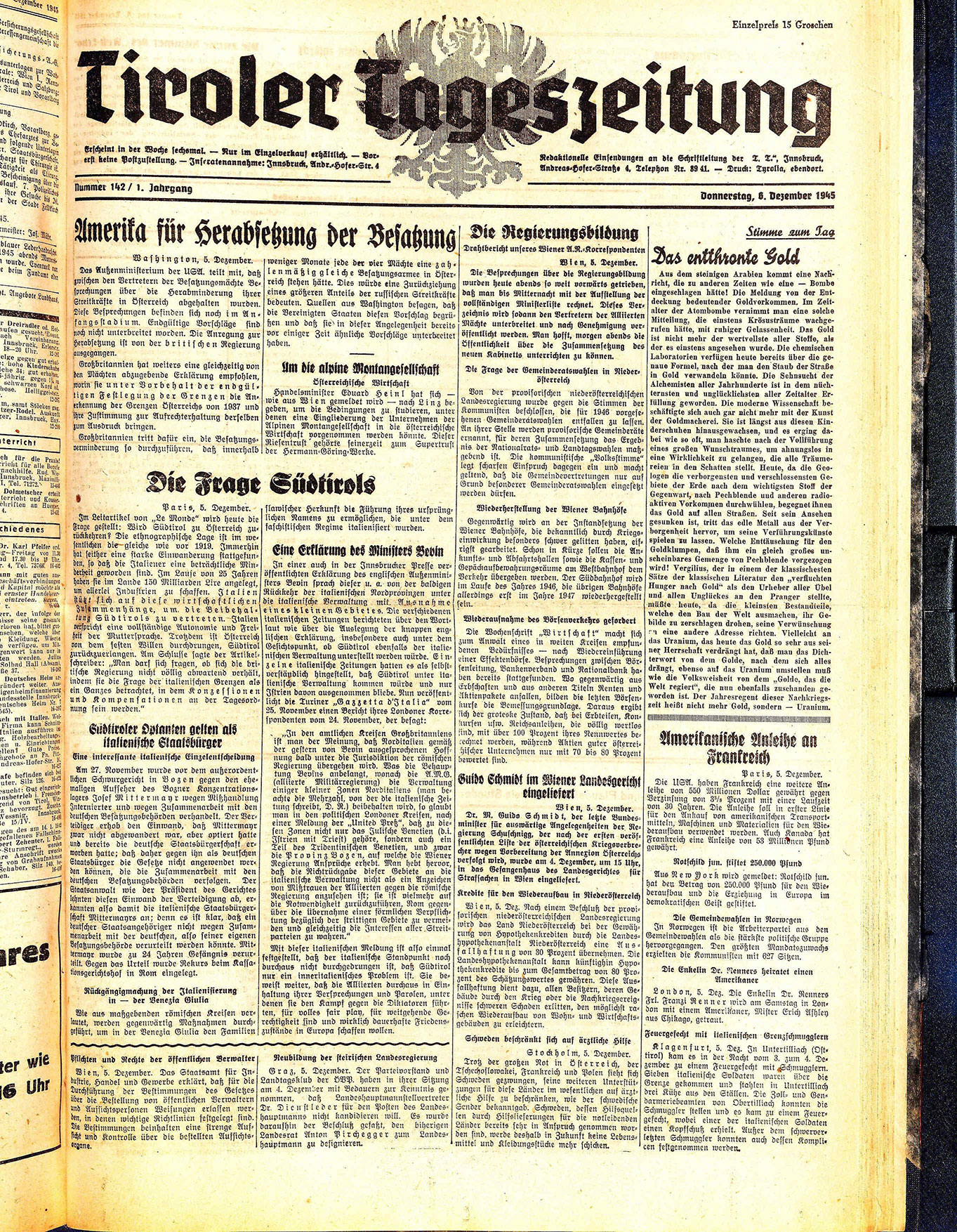 .„In den amtlichen Kreisen Großbritanniens ist man der Meinung, daß Norditalien gemäß der gestern von Bevin ausgesprochenen Hoffnung bald unter die Jurisdiktion der römischen Regierung übergehen wird. Was die Behauptung Bevins anbelangt, wonach die A.M.G. (alliierte Militärregierung) die Verwaltung einiger kleiner Zonen Norditaliens (man beachte die Mehrzahl, von der die italienische Zeitung schreibt, D. R.) beibehalten wird, so glaubt man in den politischen Londoner Kreisen, nach einer Meldung der „United Preß“, daß zu diesen Zonen nicht nur das Julische Venetien (d.i. Istrien mit Triest) gehöre, sondern auch ein Teil des Tridentinischen Venetien, und zwar die Provinz Bozen, auf welche die Wiener Regierung Ansprüche erhebt. Man hebt hervor, daß die