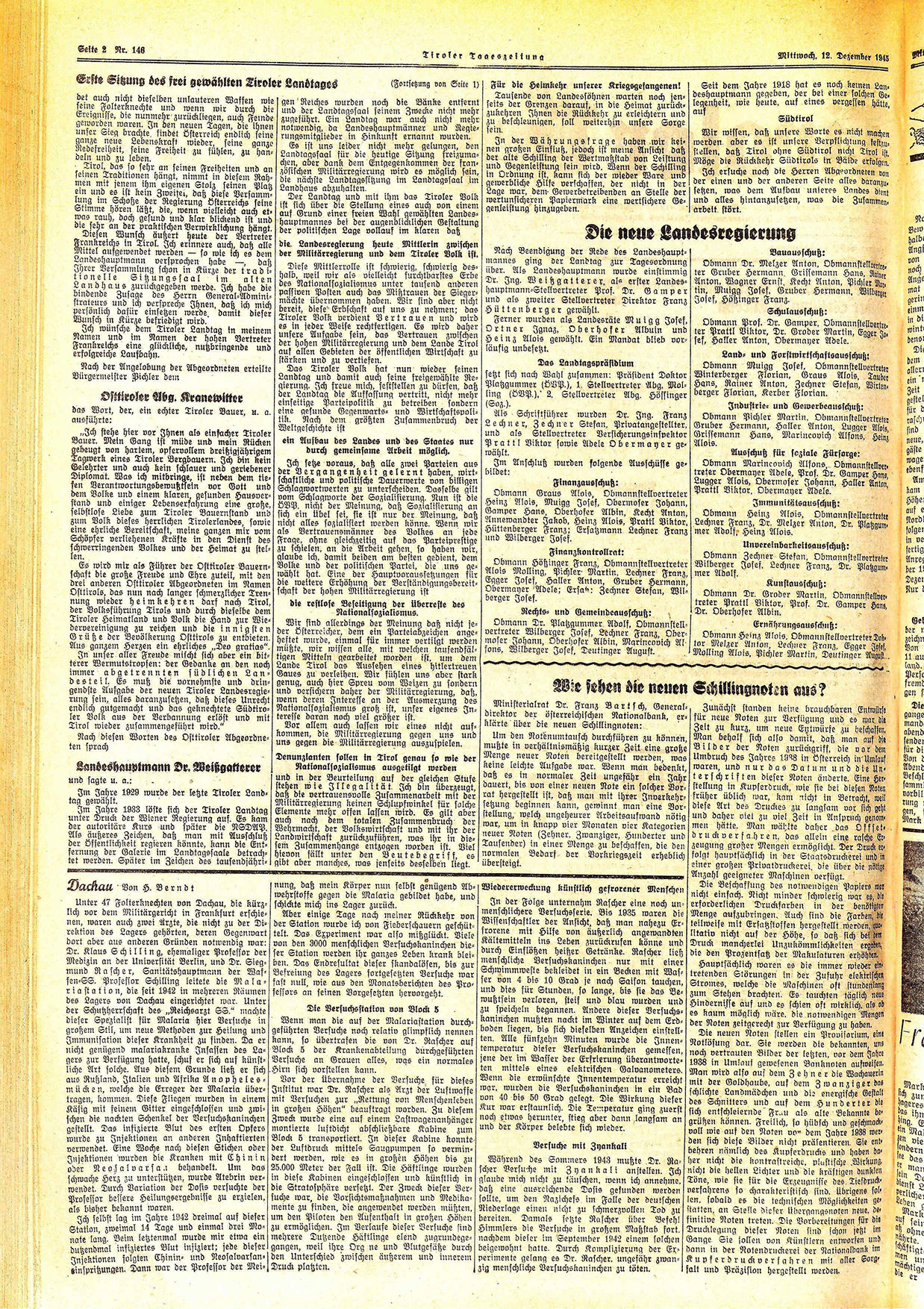 Wir sind allerdings der Meinung daß nicht jeder Österreicher, dem ein Parteiabzeichen angeheftet wurde, einmal für immer vertilgt werden müßte, wir wissen alle mit welchen tausendfältigen Mitteln gearbeitet worden ist, um dem Lande Tirol das Aussehen eines hitlertreuen Gaues zu verleihen. Wir fühlen uns aber stark genug, auch hier Spreu vom Weizen zu sondern und versichern daher der Militärregierung, daß, wenn deren Interesse an der Ausmerzung des Nationalsozialismus groß ist, unser eigenes Interesse daran noch viel größer ist.