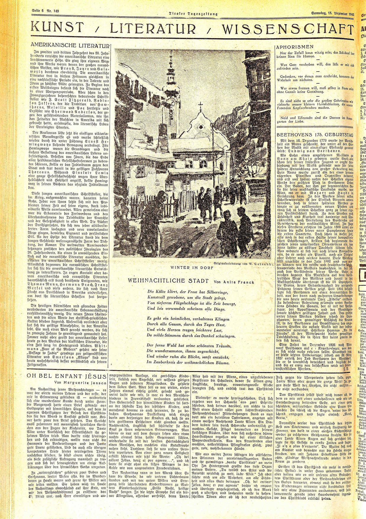 Und wieder ruhn die Blicke, sanft entzückt, Im Zauberkreis der weihnachtlichen Bäume.