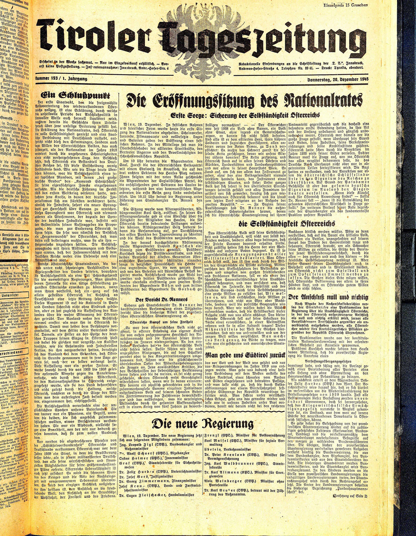 Der erste Staatsakt, den die freigewählte Volksvertretung des wiedererstandenen Österreichs vollzog, ist eine Erklärung, durch welche die unheilvolle Periode der Anschlußpolitik in sinnvoller Weise auch formell liquidiert wird, nachdem bereits die Geschichte ihren Urteilsspruch über jene unselige Verirrung gefällt hat. Die Erklärung des Nationalrates, daß Österreich die volle Selbständigkeit genießt und eine staatliche Verbindung mit Deutschland aufhebt, entspricht nicht bloß den Stimmungen, sondern auch dem Willen des österreichischen Volkes, das auch seinerzeit, als der Nationalrat im Jahre 1918 verwirrt durch die ungeheuren Schwierigkeiten einer nicht vorhergesehenen Lage den Beschluß faßte, daß Österreich ein Bestandteil des Deutschen Reiches sei, für diese