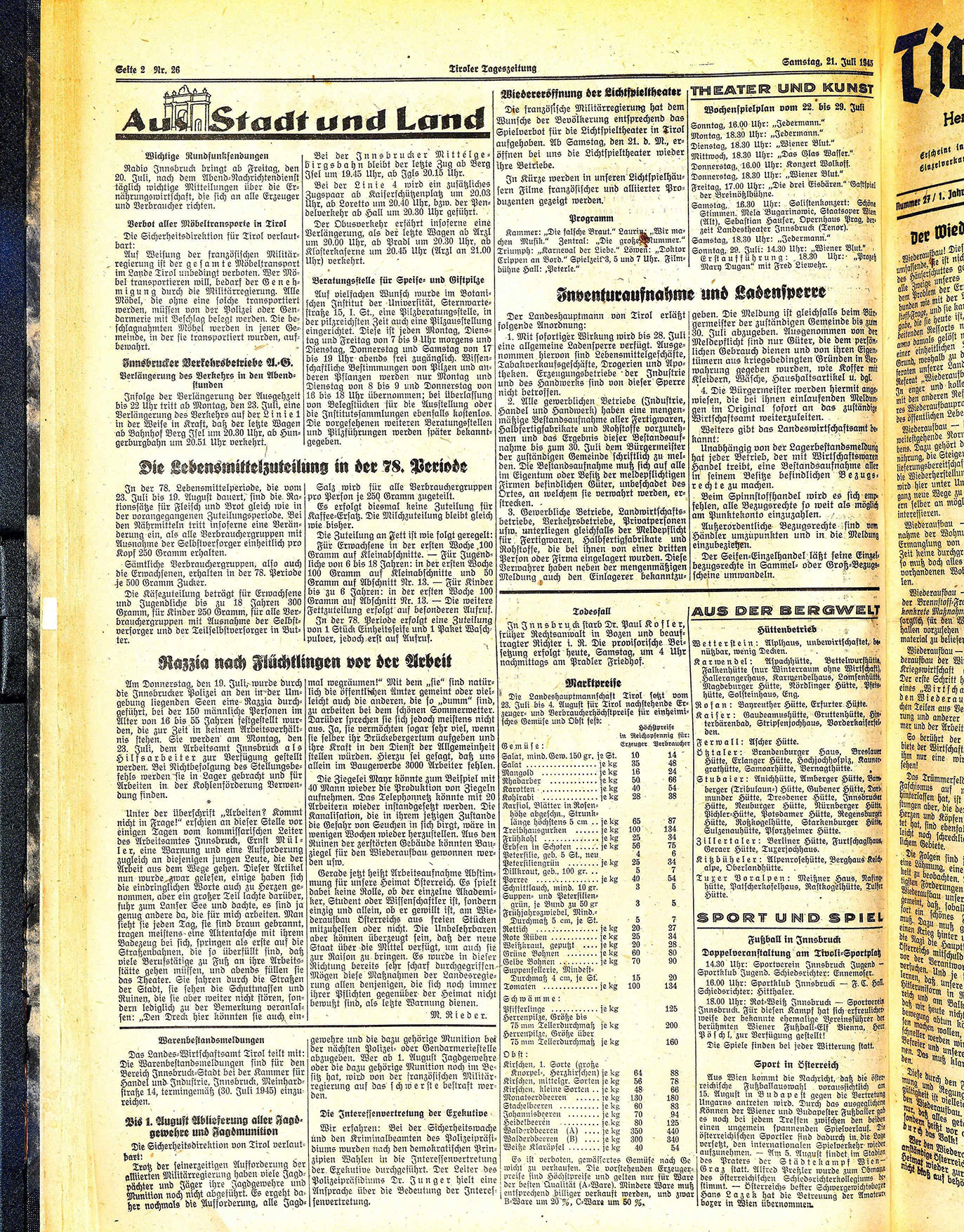 Auf Weisung der französischen Militärregierung ist der gesamte Möbeltransport im Lande Tirol unbedingt verboten. Wer Möbel transportieren will, bedarf der Genehmigung durch die Militärregierung. Alle Möbel, die ohne eine solche transportiert werden, müssen von der Polizei oder Gendarmerie mit Beschlag belegt werden. Die beschlagnahmten Möbel werden in jener Gemeinde, in der sie transportiert wurden, aufbewahrt.