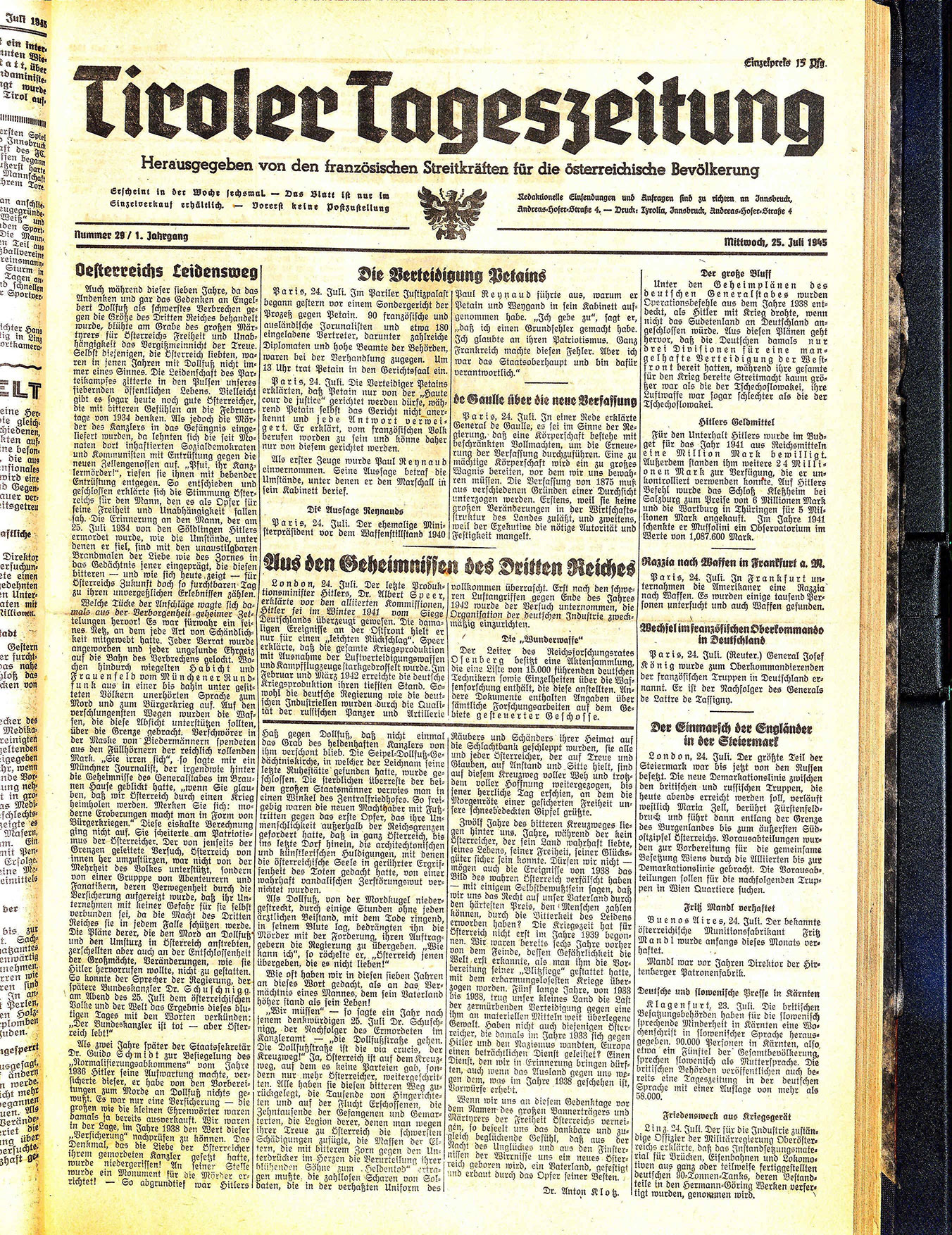 Tiroler Tageszeitung 1945
