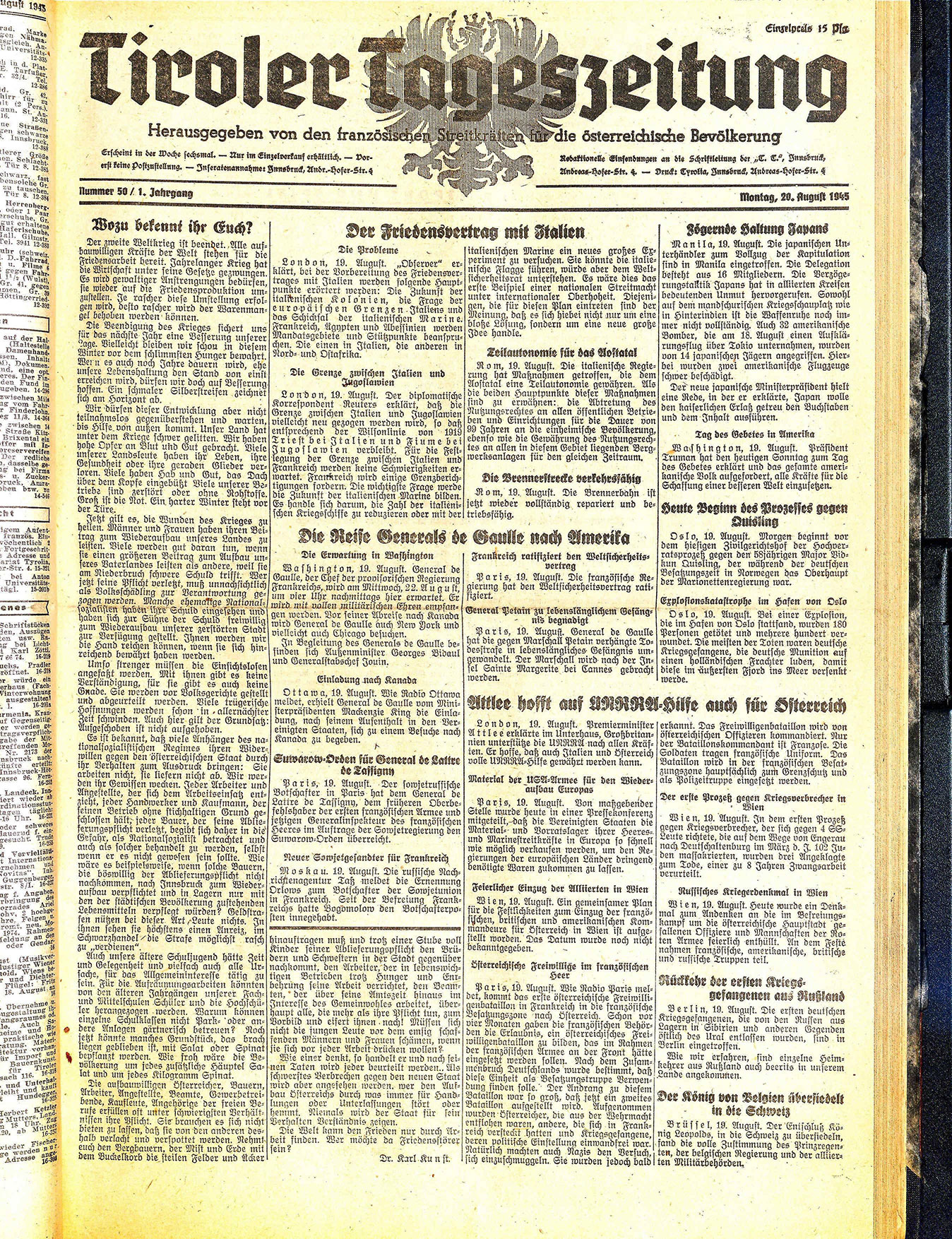 Tiroler Tageszeitung 1945