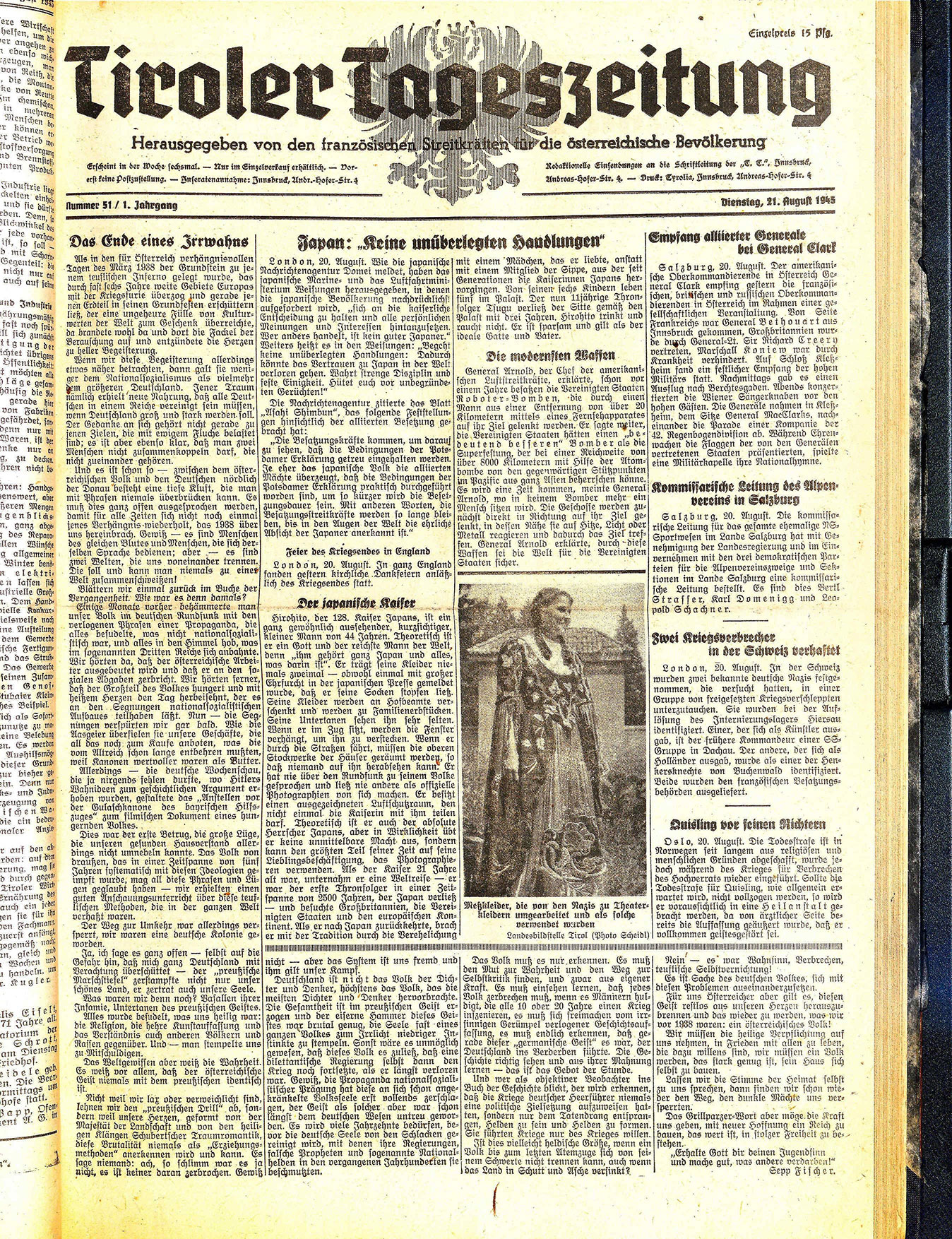 Erscheint in der Woche sechsmal. — Nur im Einzelverkauf erhältlich. — Dorerst keine Postzustellung. — Inseratenannahme: Innsbruck, Andr.-Hofer-Str. 4