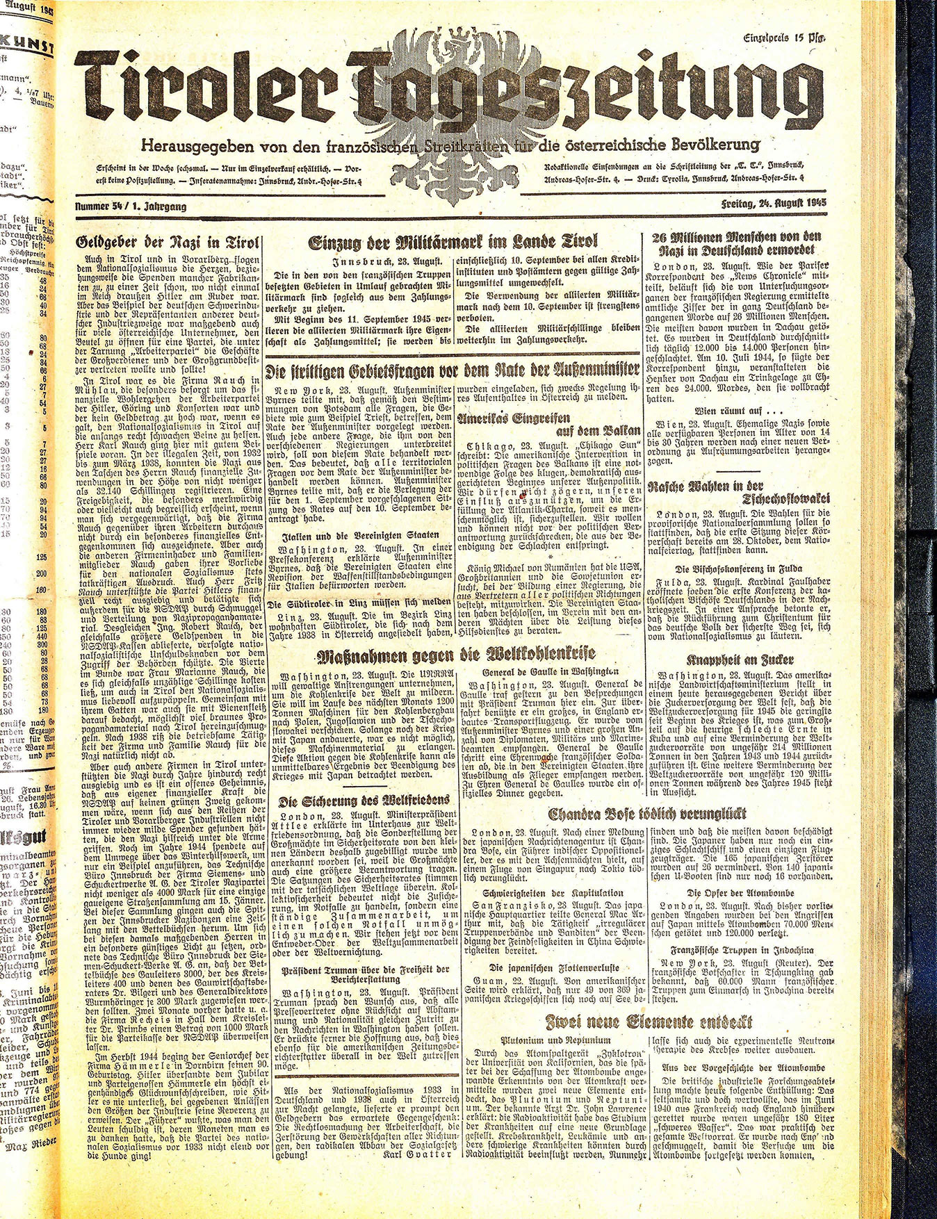 Erscheint in der Woche sechsmal. — Nur im Einzelverkauf erhältlich. — Dor erst keine Dostzustellung. — Inseratenannahme: Innsbruck, Andr.-Hofer-Str.