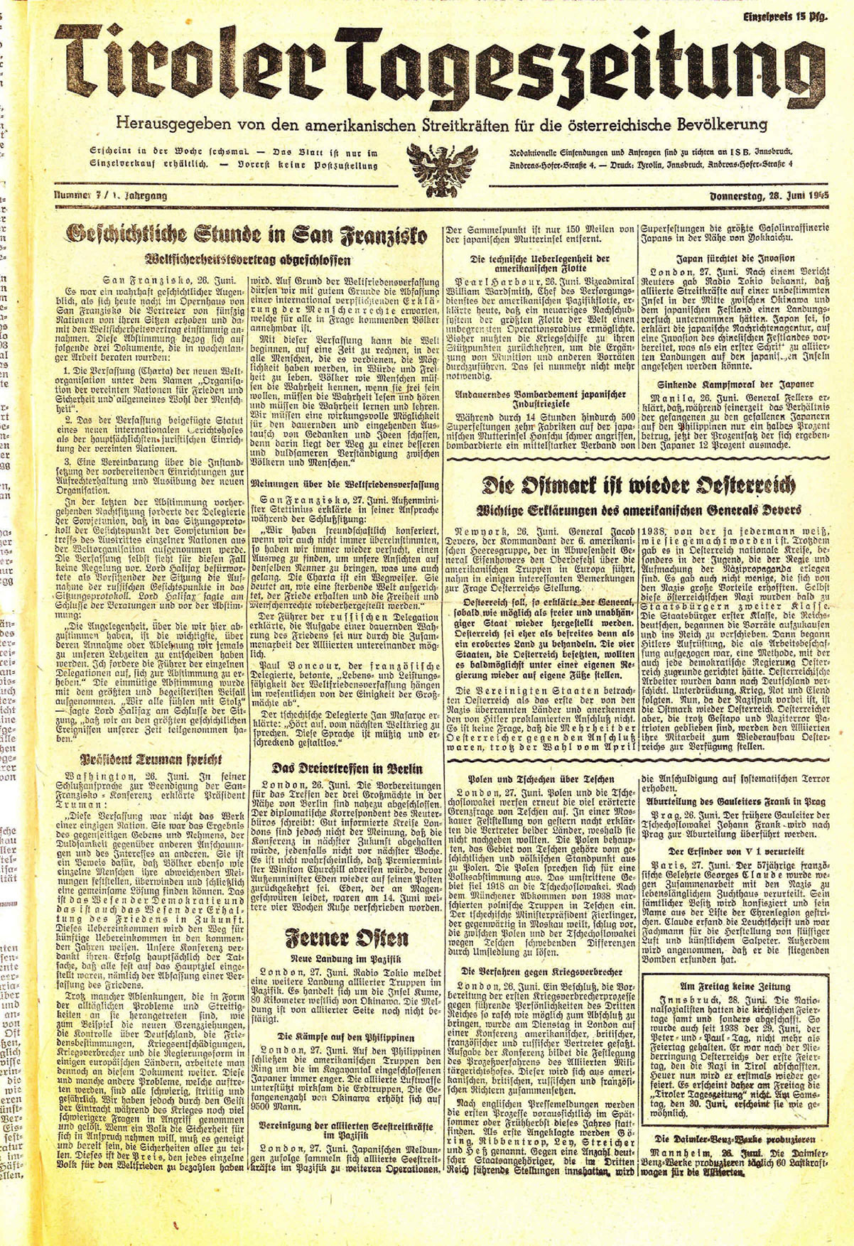 Tiroler Tageszeitung 1945