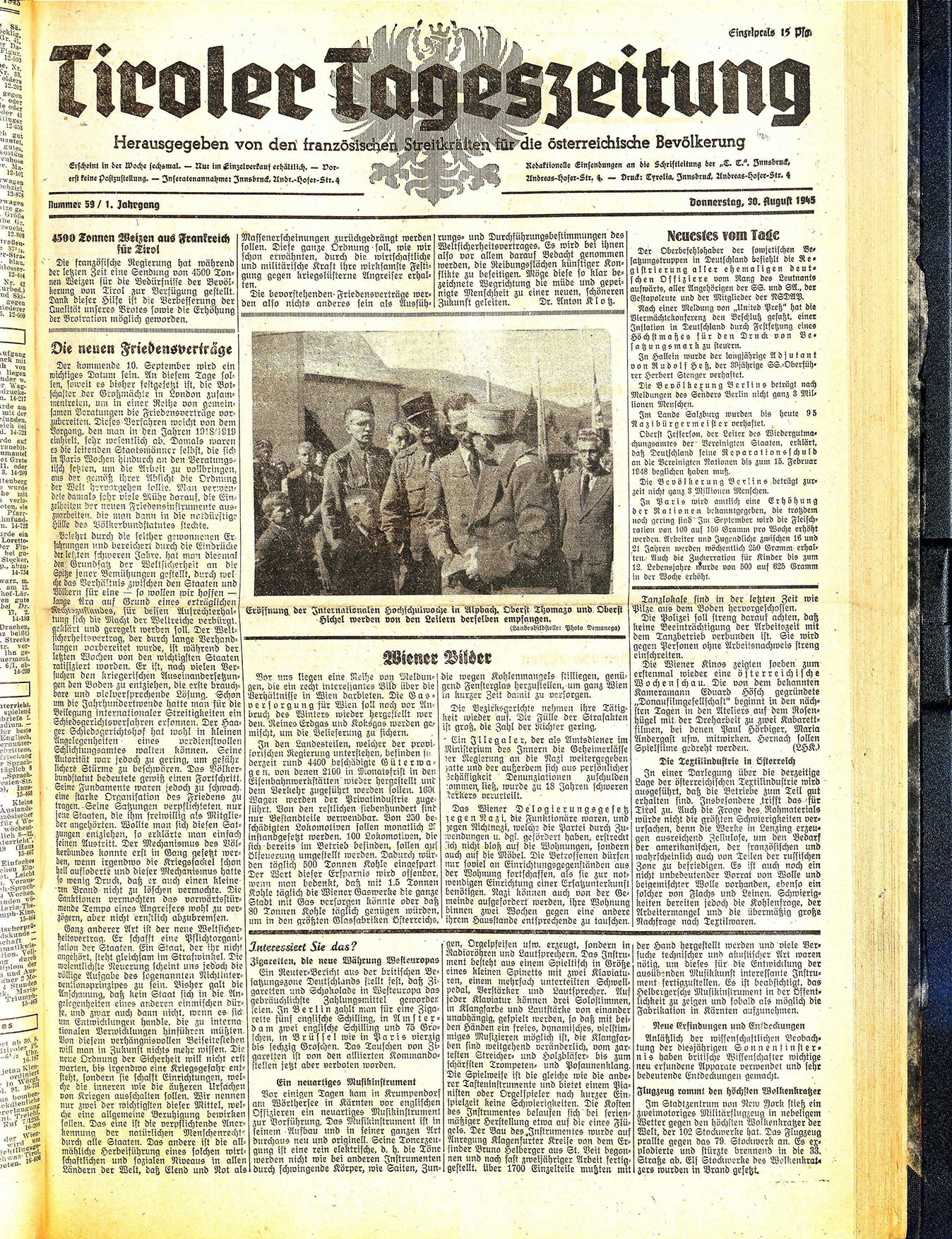 Erscheint in der Woche sechsmal. — Nur im Einzelverkauf erhältlich. — Dorerst keine Postzustellung. — Inseratenannahme: Innsbruck, Andr.-Hofer-Str. 4