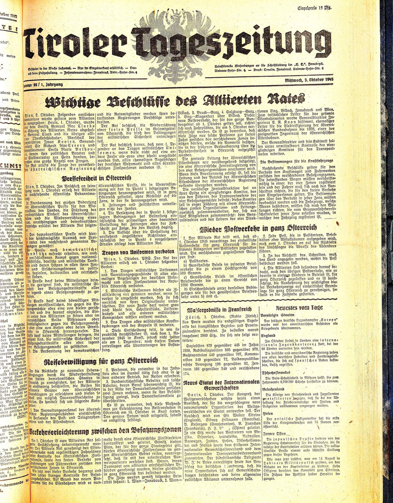 in Anerkennung der großen Bedeutung mer österreichischen Presse für den Wiemaufbau des Landes, die Stärkung der #nokratischen Einheit des österreichischen bltes und die Wiedererrichtung eines nen, unabhängigen und demokratischen berreichs erklärt der Alliierte Rat folgen