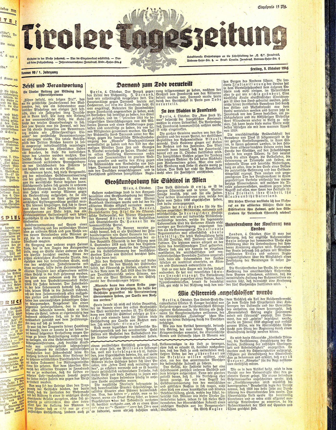 Tiroler Tageszeitung 1945