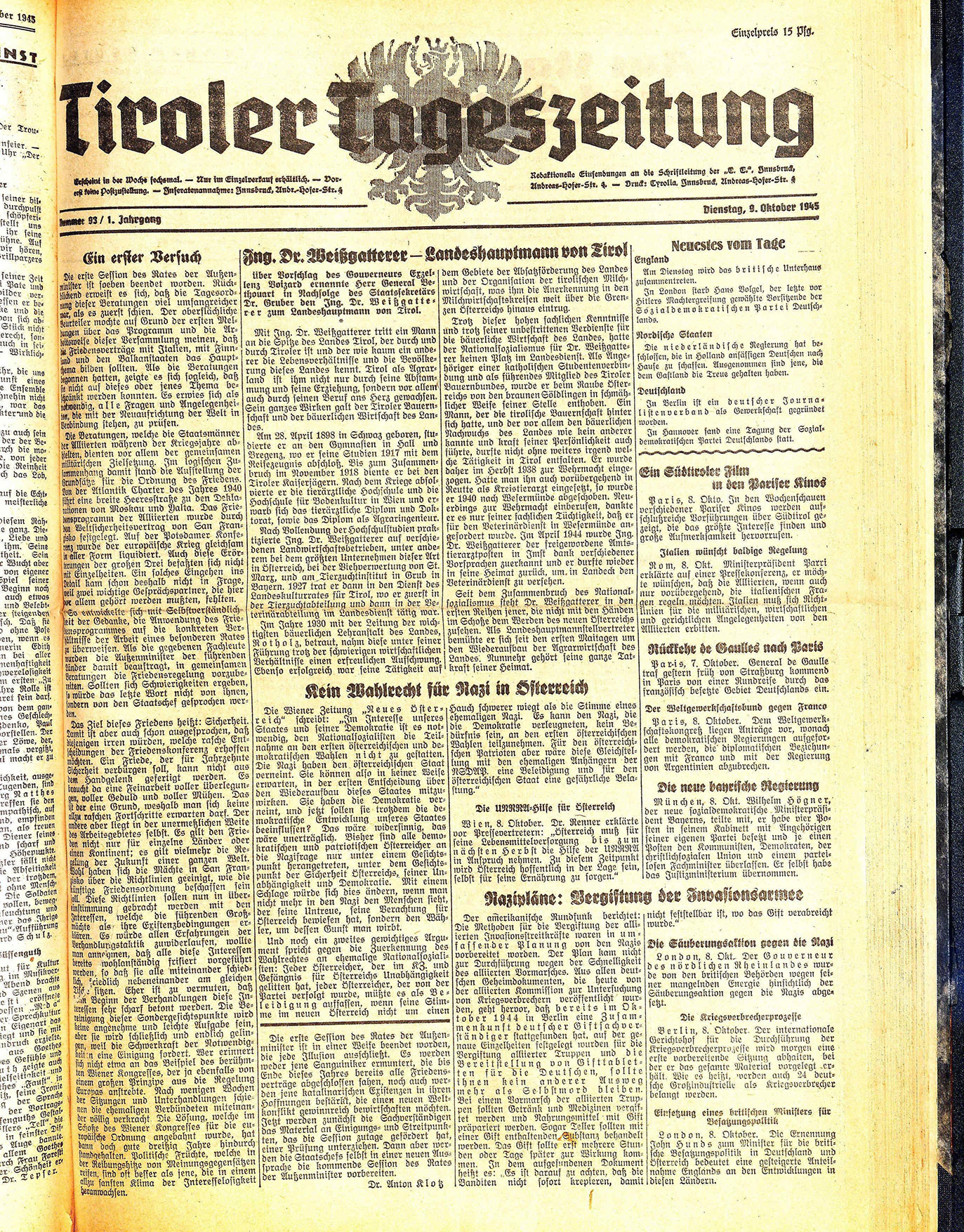 Tiroler Tageszeitung 1945