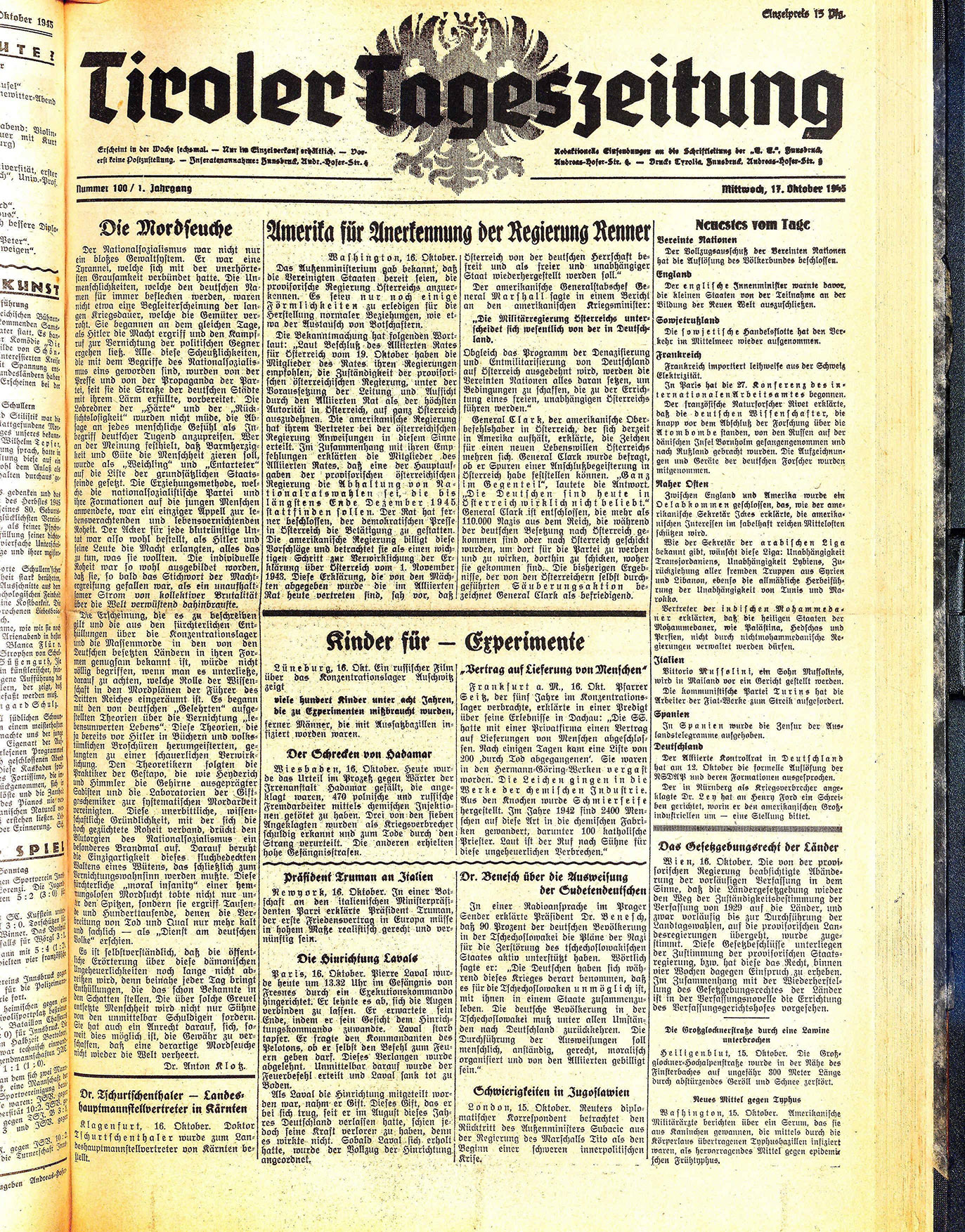 Mittwoch, 17. Oktober 1945