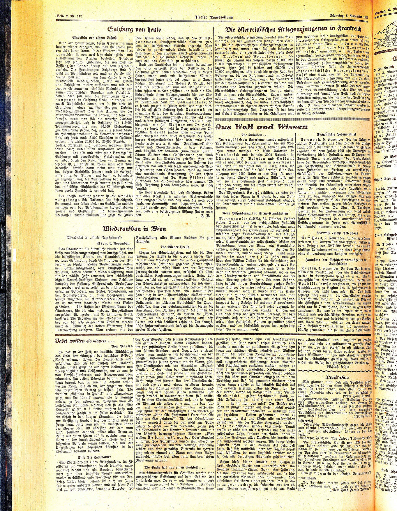 Die österreichische Regierung bereitet eine Demarche bei den zuständigen französischen Stellen für die österreichischen Kriegsgefangenen in Frankreich vor, unter denen sich, wie besonders vermerkt wird, eine verhärltnismäßig große Zahl von Tirolern und Vorarlbergern befindet. Zu Beginn des Jahres waren 10.000 bis