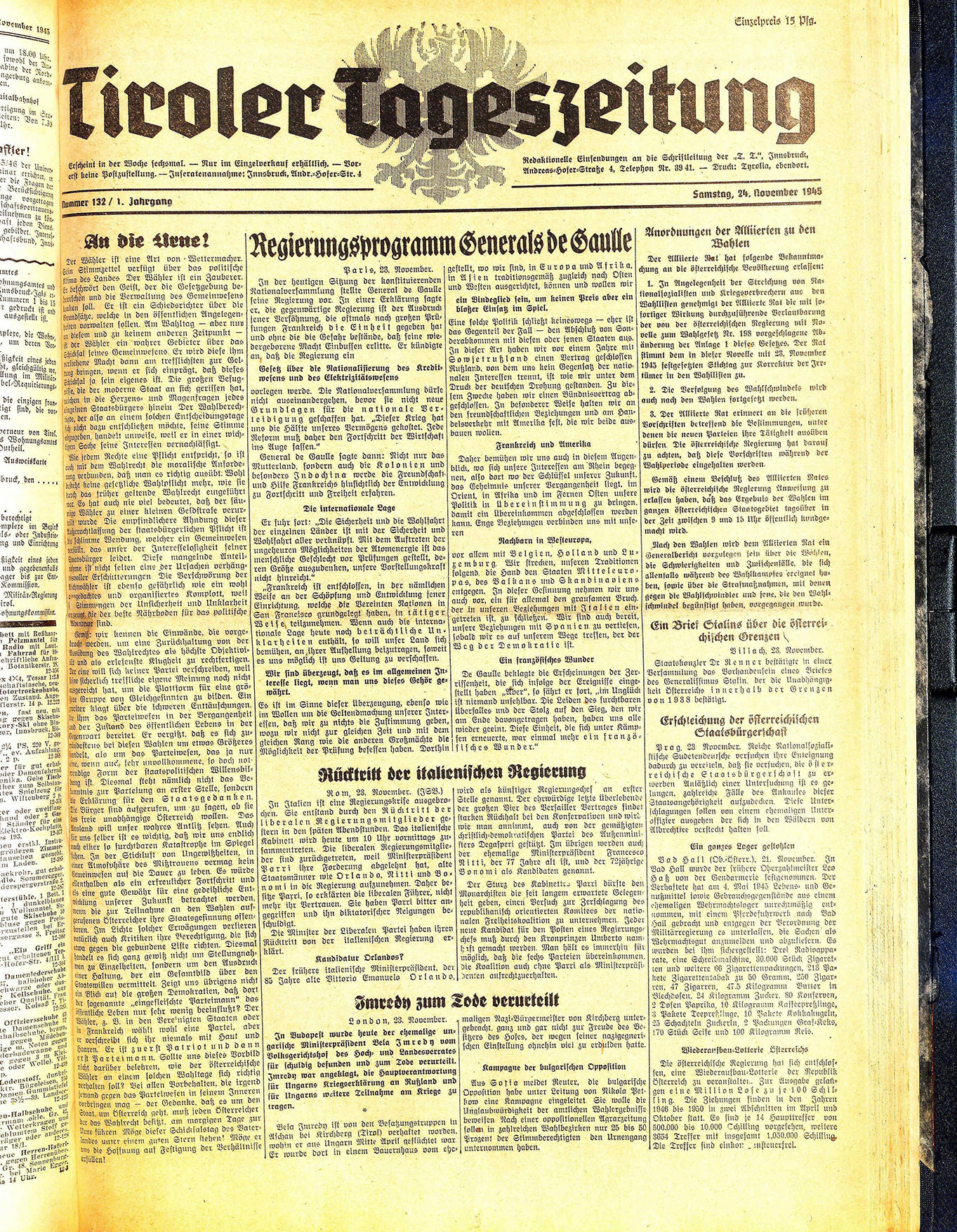 Erscheint in der Woche sechsmal. — Nur im Einzelverkauf erhältlich. — Vorerst keine Postzustellung. — Inseratenannahme: Innsbruck, Andr.=Hofer=Str. 4