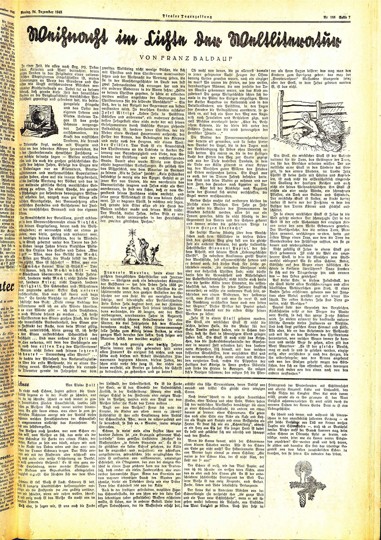 heute? — Umwertung aller Werte!“ ... So dachte der Philosoph des Nationalsozialisus über die erste Weihnacht, die er einen Unsückstag nennt. Gleichwohl brachte die europäche Literatur gerade im Jahrzehnt vor dem
