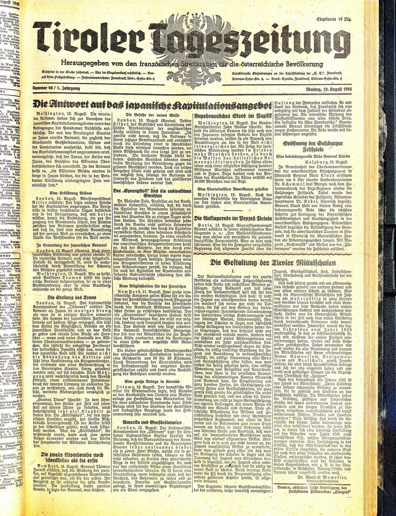 Tiroler Tageszeitung 1945